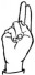 На ћирилици написано МИЉАН КЛЕПАЦ састоји се из 11 слова [?]. Исписано ћириличном једноручном азбуком за глувонеме: